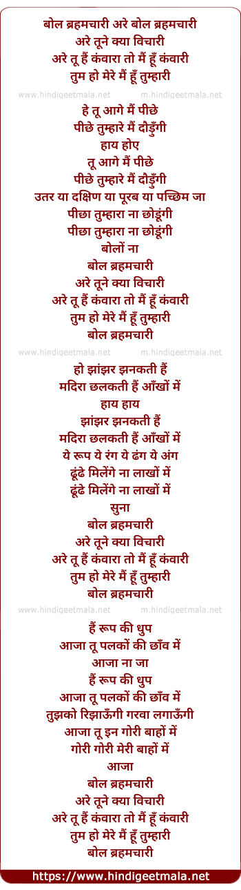 Lyrics of Bol Brahmchari Are Bol Brahmchari - बोल ब्रहमचारी अरे बोल ब्रहमचारी
