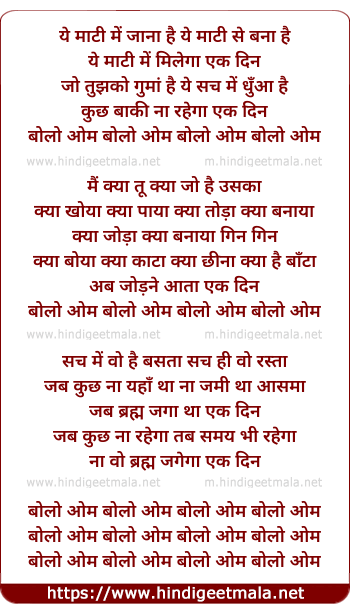 Lyrics of Bolo Om - ये माटी में जाना है ये माटी से बना है