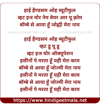 Lyrics of Bombay Se Aaya Hu Johmy Meraa Naam - बॉम्बे से आया हूँ जोह्मी मेरा नाम