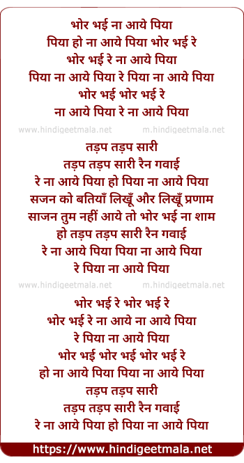 bhor bhayi re na aaye na aaye piya