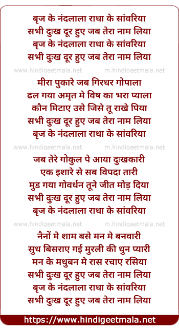 Lyrics of Brij Ke Nandlala Radha Ke Sanwariya - बृज के नंदलाला राधा के सांवरिया