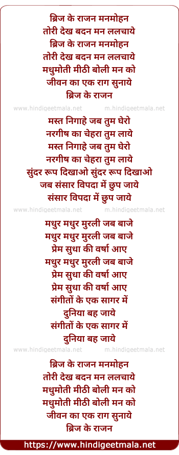 Lyrics of Brij Ke Rajan Manmohan - ब्रिज के राजन मनमोहन