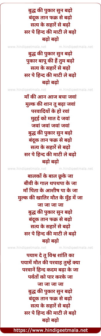 Lyrics of Budh Ki Pukar Sun Badho - बुद्ध की पुकार सुन बढ़ो