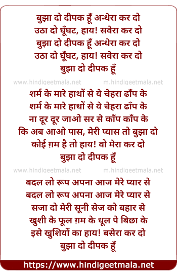Lyrics of Bujha Do Deepak Hu Andhera Kar Do - बुझा दो दीपक हूँ अन्धेरा कर दो