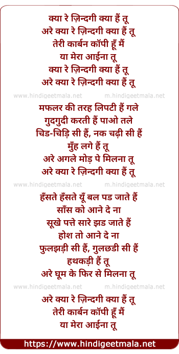 arre kya re zindagi kya hai tu