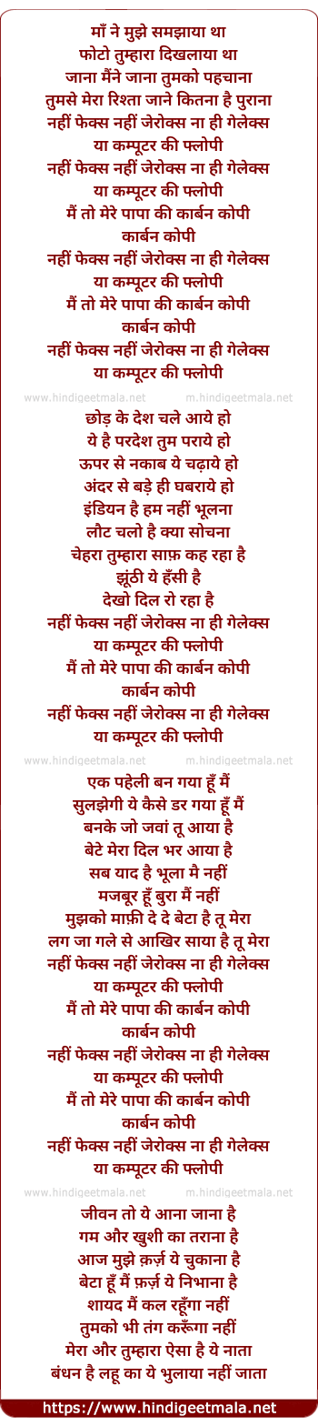 Lyrics of Carbon Copy (Duet) - माँ ने मुझे समझाया था