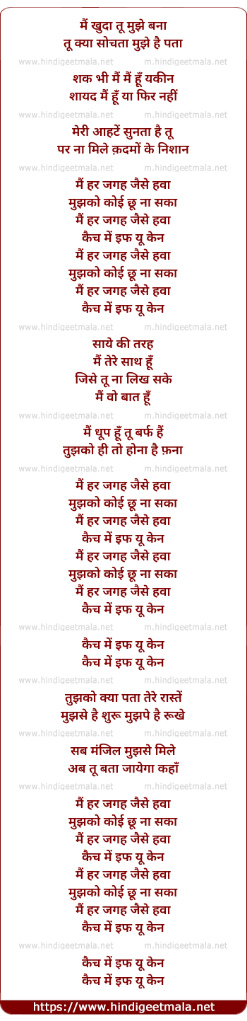 Lyrics of Catch Me If U Can - कैच में इफ यू केन