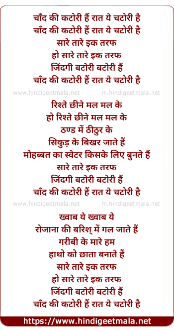 Lyrics of Chand Ki Katori Hai Raat Ye Chatori Hai - चाँद की कटोरी हैं रात ये चटोरी है