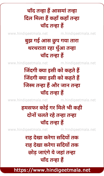 Lyrics of Chaand Tanha - चाँद तन्हा हैं आसमां तन्हा