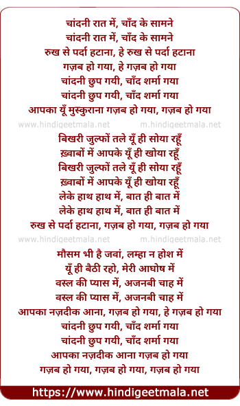 Lyrics of Chaandani Raat Mein, Chaand Ke Saamane - चांदनी रात में, चाँद के सामने