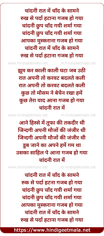 Lyrics of Chaandani Raat Mein Chaand Ke Saamane, Rukh Se Paradaa Hatana - चांदनी रात में चाँद के सामने, रुख से पर्दा हटाना