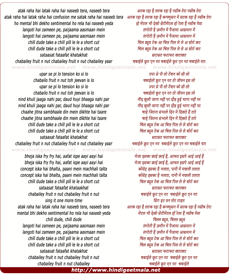 atak raha hai latak raha hai confusion me satak raha hai naseeb tera