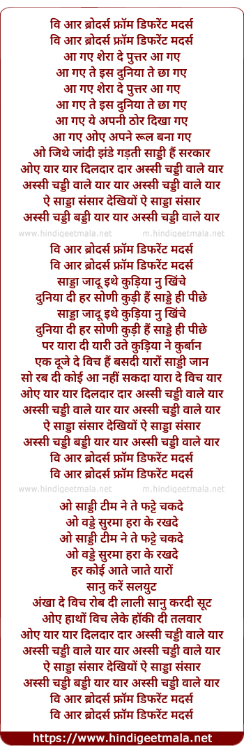 Lyrics of Chaddi Wale Yaar (Speady Singhs) - वि आर ब्रोदर्स फ्रॉम डिफरेंट मदर्स
