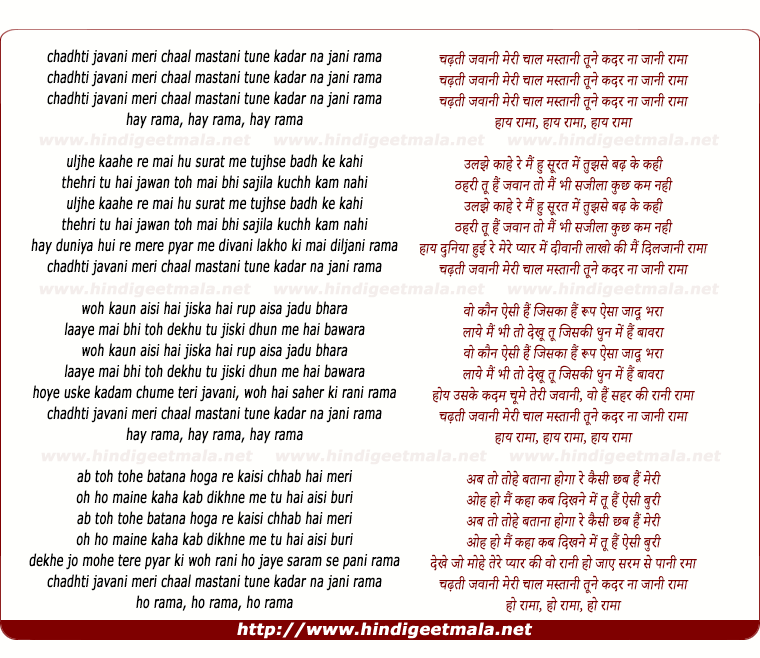 chadhti javani meri chaal mastani tune kadar na jani rama