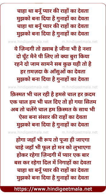Lyrics of Chaha Tha Banu Pyar Ki Raho Ka Devta - चाहा था बनूँ प्यार की राहों का देवता