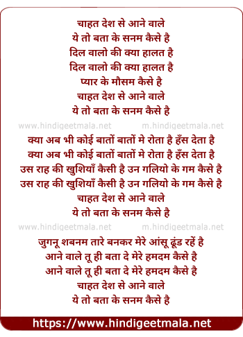 Lyrics of Chahat Desh Se Aane Wale - चाहत देश से आने वाले