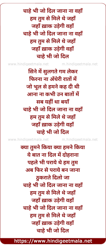 Lyrics of Chahe Bhi Jo Dil Jana Na Waha - चाहे भी जो दिल जाना ना वहाँ