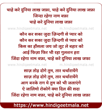 Lyrics of Chahe Kare Dooniya Lakh Jafa - चाहे करे दुनिया लाख जफ़ा