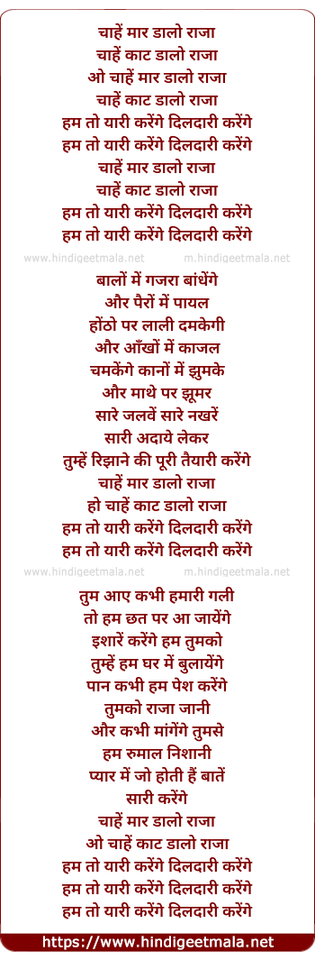 Lyrics of Chahe Mar Dalo Raaja - चाहें मार डालो राजा