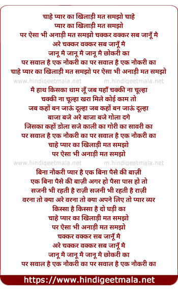 Lyrics of Chahe Pyar Ka Khiladi Mat Samjho - चाहे प्यार का खिलाड़ी मत समझो