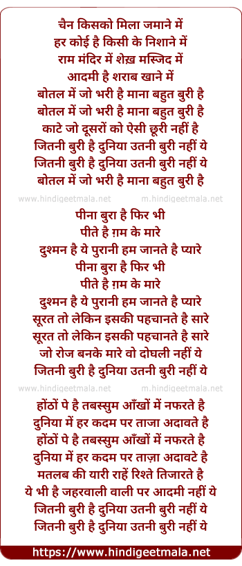 Lyrics of Chain Kisko Mila Zamane Me - चैन किसको मिला जमाने में