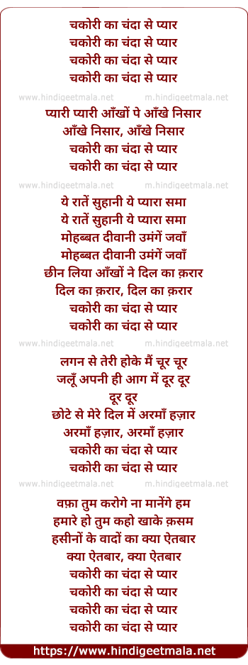 Lyrics of Chakoree Kaa Chanda Se Pyar - चकोरी का चंदा से प्यार