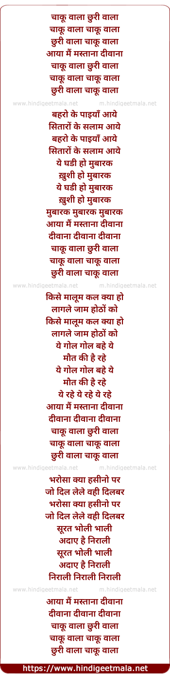 Lyrics of Chaku Wala Churi Wala, Chaku Wala (Part 2)