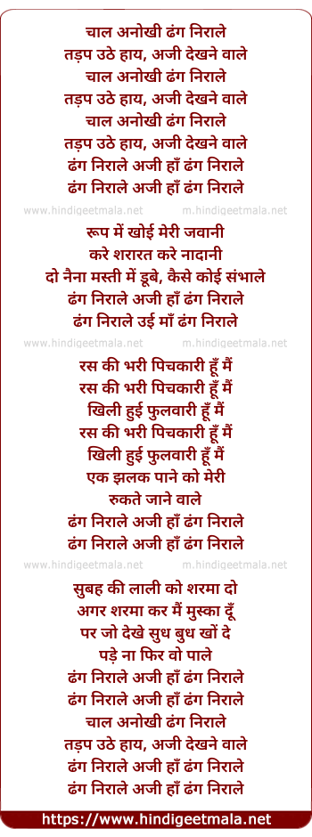 Lyrics of Chal Anokhi Dhang Nirale - चाल अनोखी ढंग निराले