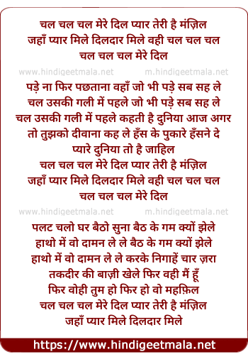 Lyrics of Chal Chal Chal Mere Dil - चल चल चल मेरे दिल