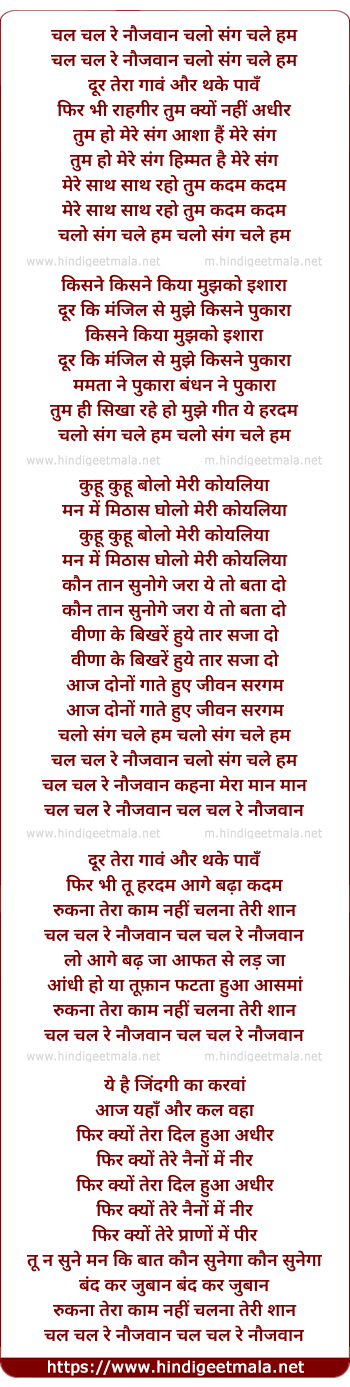 Lyrics of Chal Chal Re Naujawan Kehna - चल चल रे नौजवान चलो संग चले हम