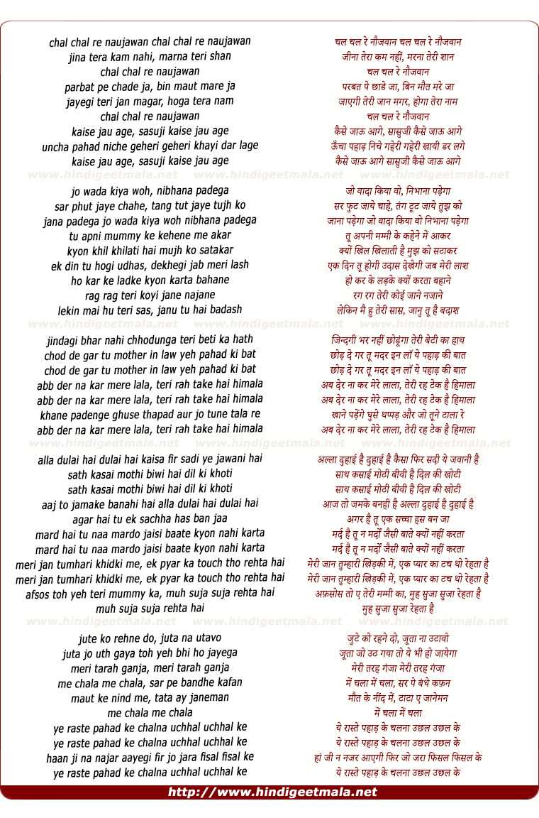Comments for lyrics of song "Chal Chal Re Naujawan (Parody)"