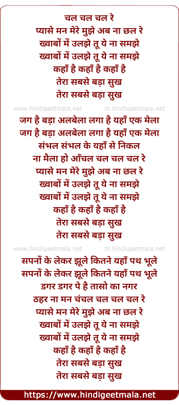 Lyrics of Chal Chal Re Pyase Man Mere - चल चल रे प्यासे मन मेरे