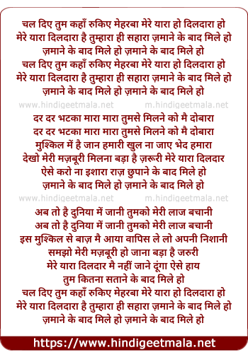 chal diye tum kaha rukiye meharba mere yara ho dildara ho