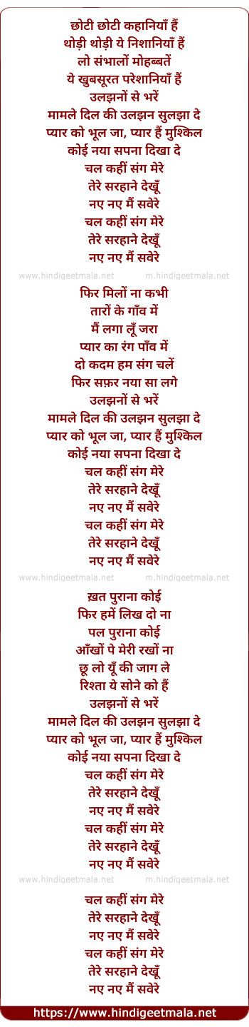 Lyrics of Chal Kahi Sang Mere - छोटी छोटी कहानियाँ हैं