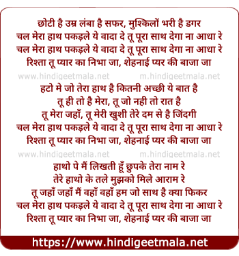 Lyrics of Chal Mera Haath Pakad Le - चल मेरा हाथ पकड़ ले