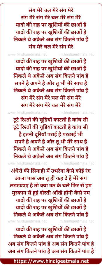 Lyrics of Sang Mere Chal - संग मेरे चल