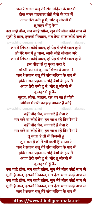 Lyrics of Chal Re Sajan Chalu Tere Sang - चल रे सजन चलू तेरे संग