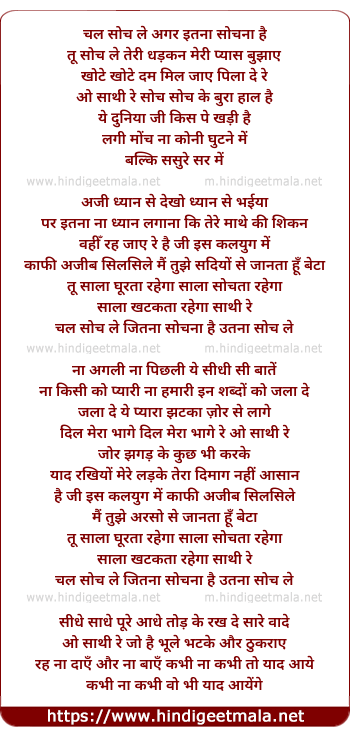 Lyrics of Chal Soch Le Agar Itnaa Sochna Hai - चल सोच ले अगर इतना सोचना है