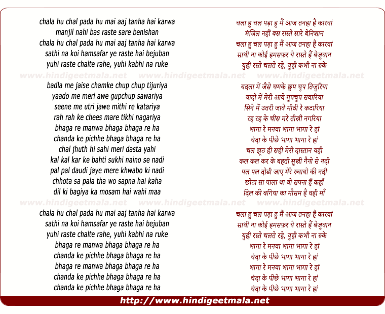 Lyrics of Chala Hu Chal Padaa Hu Mai Aaj - चला हूँ चल पड़ा हूँ मैं आज