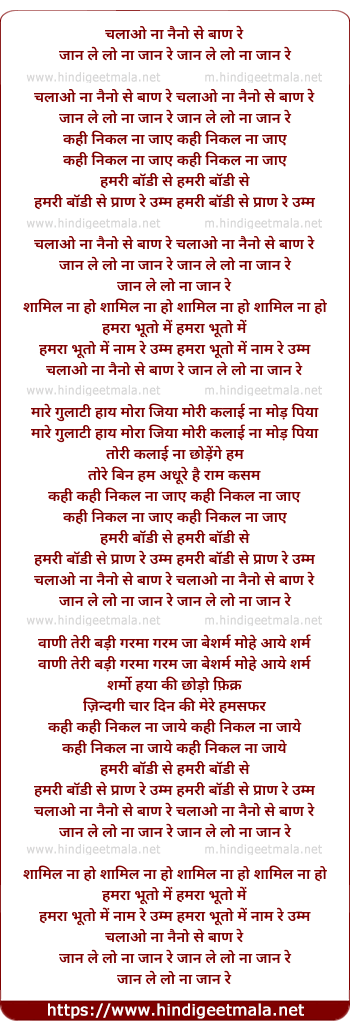 Lyrics of Chalao Na Naino Se Baan Re - चलाओ ना नैनो से बाण रे