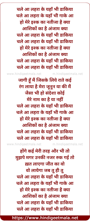 Lyrics of Chale Aa Lehra Ke - चले आ लहरा के यहाँ भी डाकिया