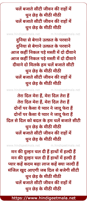 Lyrics of Chale Bajate Seeti Jeevan Ki Raaho Me - चलें बजाते सीटी जीवन की राहों में