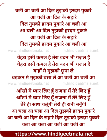 Lyrics of Chali Aa Dil Tujhko Hurdum Pukare - चली आ दिल तुझको हरदम पुकारे