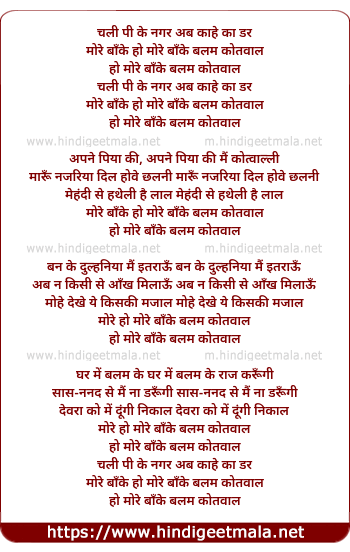 Lyrics of Chali Pee Ke Nagar - चली पी के नगर