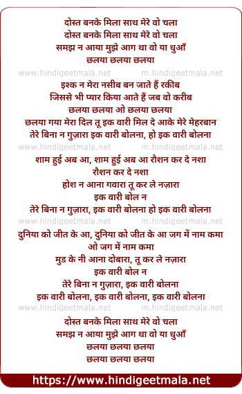 Lyrics of Challeya Challeya Challeya - दोस्त बनके मिला साथ मेरे वो चला