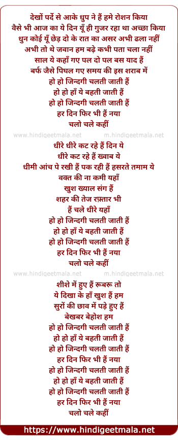Lyrics of Chalo Chalen Kahin - देखों पर्दे से आके धुप ने हैं हमे रोशन किया