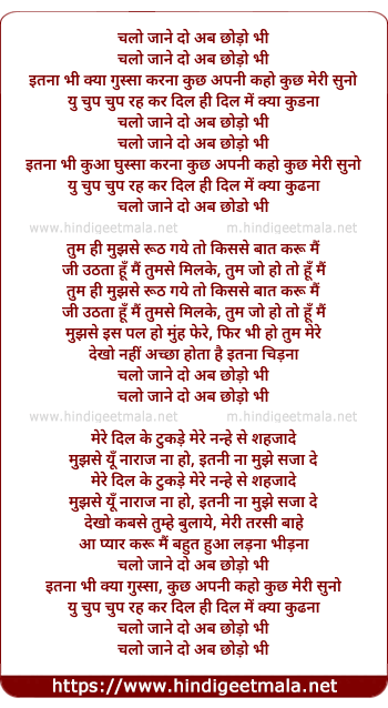 Lyrics of Chalo Jane Do Abb Chhodo Bhi - चलो जाने दो अब छोड़ो भी