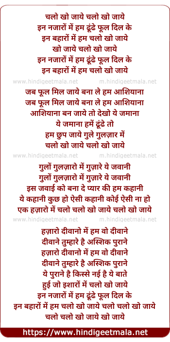 Lyrics of Chalo Kho Jaaye - चलो खो जाये