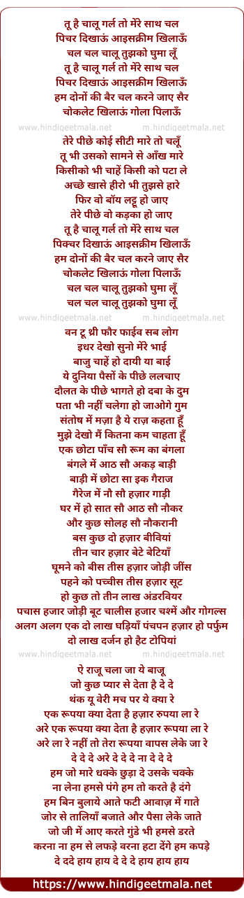Lyrics of Chaloo Girl - तू है चालू गर्ल तो मेंरे साथ चल