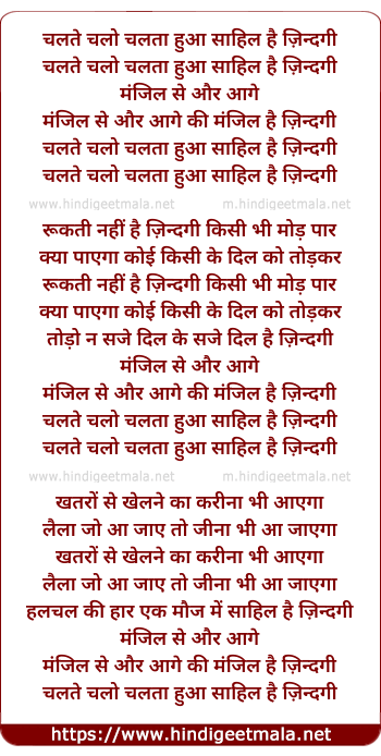 Lyrics of Chalte Chalo Chalta Hua Sahil Hai Zindagi - चलते चलो चलता हुआ साहिल है ज़िन्दगी